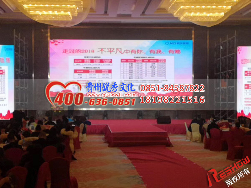 贵州锐秀文化传播有限公司提供大批租赁活动会议物料,专业从事音响灯光LED大屏租赁、签到背景搭建、舞台建设、企业年会布置、会场策划布置、预定酒店、舞台设备租赁、桁架背景喷绘搭建、标准展位出租、书画展览策划布置、开业庆典、婚庆服务等等。